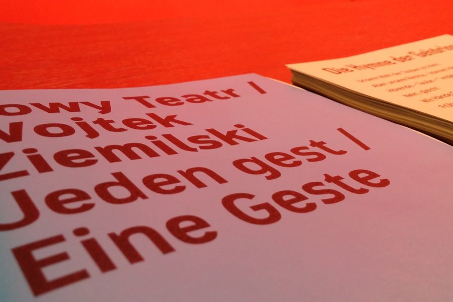 Aus dem Stück „Jeden gest“ von Wojtek Ziemilski, Nowy Teatr Warschau.